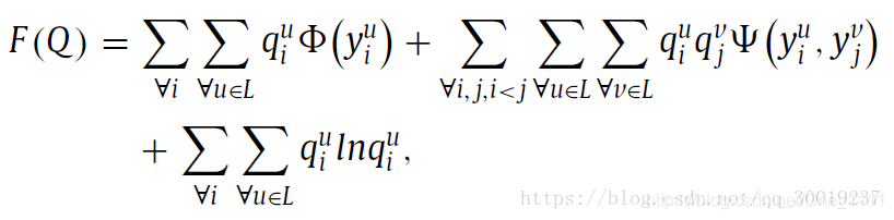 该方法以2D图像作为输入,通过全连接条件随机场(Fully connected CRFs)对各像素所分配得到标签的概率进行了预测。主要参数包括分配给图像的标签、分配给像素的标签、单个标签分配的代价以及多个标签联合分配的代价,输出为标签分配的概率。