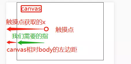 如图,我们需要的值 = 触摸点获取到的x - canvas相对body的左边距