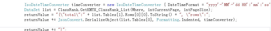 JsonConvert.SerializeObject(list.Tables[0], Formatting.Indented, timeConverter);