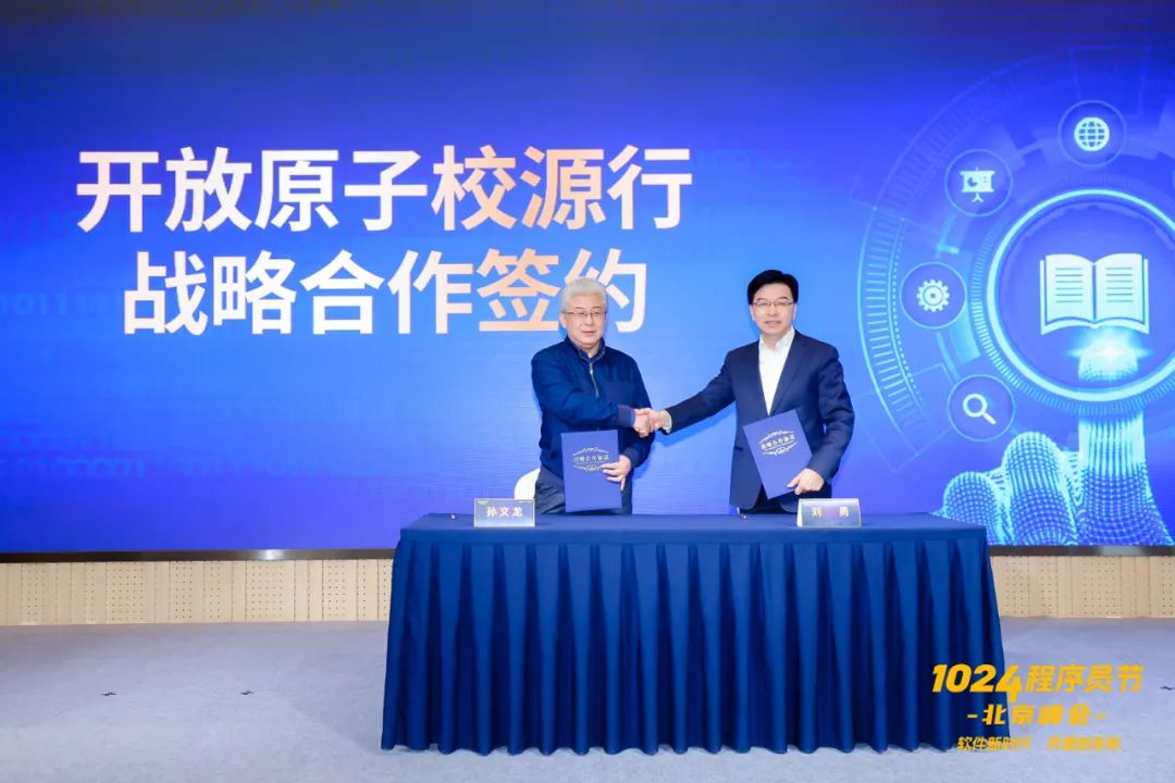 会上,开放原子开源基金会理事长孙文龙与腾讯公司副总裁刘勇签署了“开放原子校源行”战略合作协议,双方将持续探索产教融合新路径,通过“开放原子校源行”公益项目,培养更多的开源综合型人才、拓展开源贡献新领域、推动开源科研成果高效转化等。