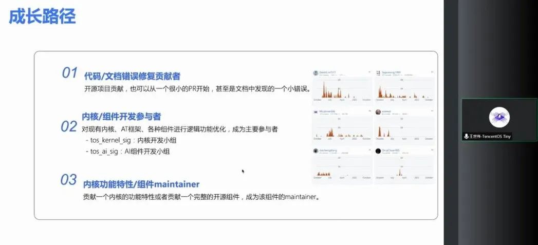 王世伟分享了《北邮高校行——TencentOS Tiny开源项目分享》,他表示,高校学生参与开源项目不仅能够提高个人代码水平,而且能在开源协同的过程中不断成长,更重要的是,通过参与社区,并结识项目中的一些技术大牛。