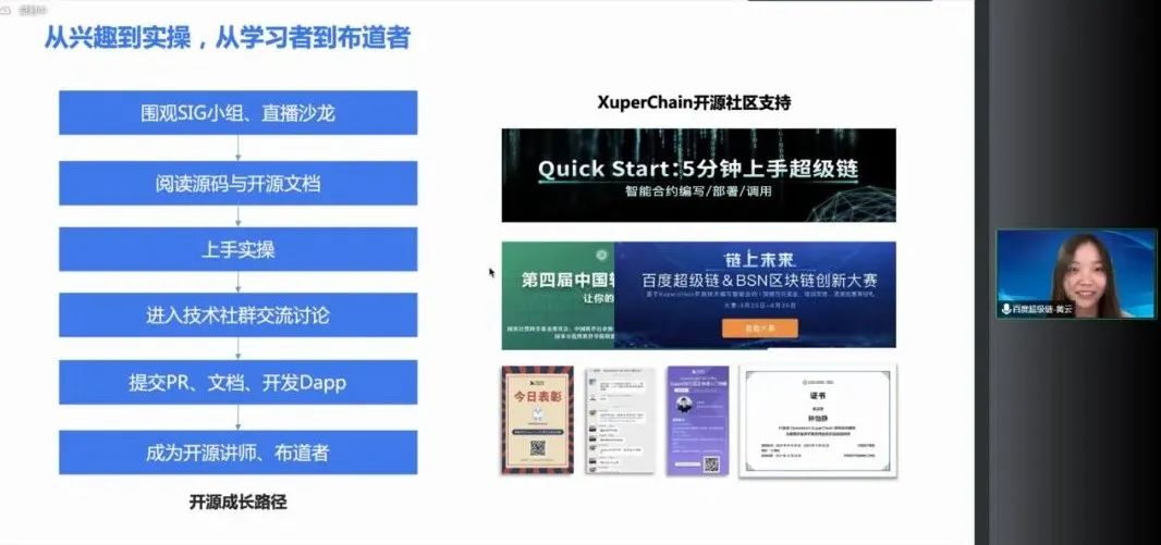 黄云分享了《开源点亮Web3之光——XuperCore开源项目分享》,并阐述了如何利用开源代码构建自己的Web3应用,以及以区块链应用型人才培养为核心的一站式教学+实训+科研方案。