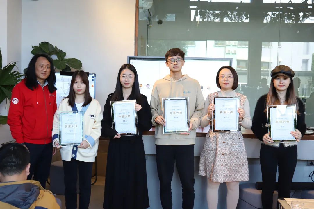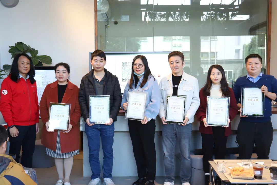 随后,开放原子开源基金会高级顾问郭晧为到场开源大使颁发证书。