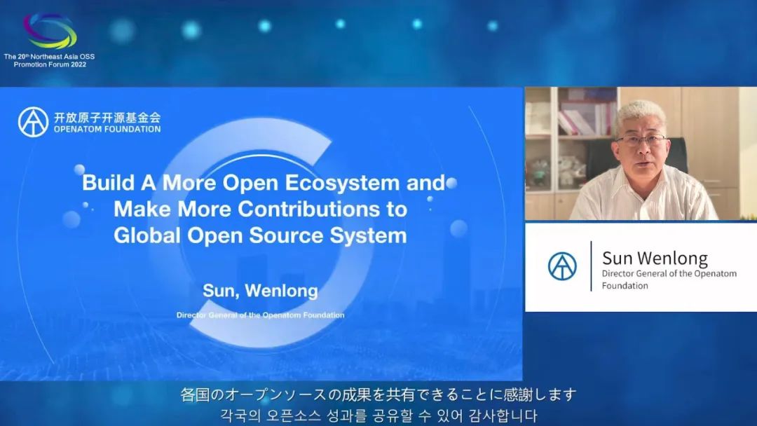 11月24日,第二十届中日韩三国IT局长OSS会议暨东北亚开源软件推进论坛(简称“中日韩会议”)以在线形式成功召开。大会由中华人民共和国工业和信息化部、日本经济产业省、韩国科学技术情报通讯部主办,本届大会主题为“开源,未来可期!(The future of open source software)”。开放原子开源基金会理事长孙文龙受邀出席并发表题为《建设开源开放生态 提升对全球开源贡献》的主题演讲。