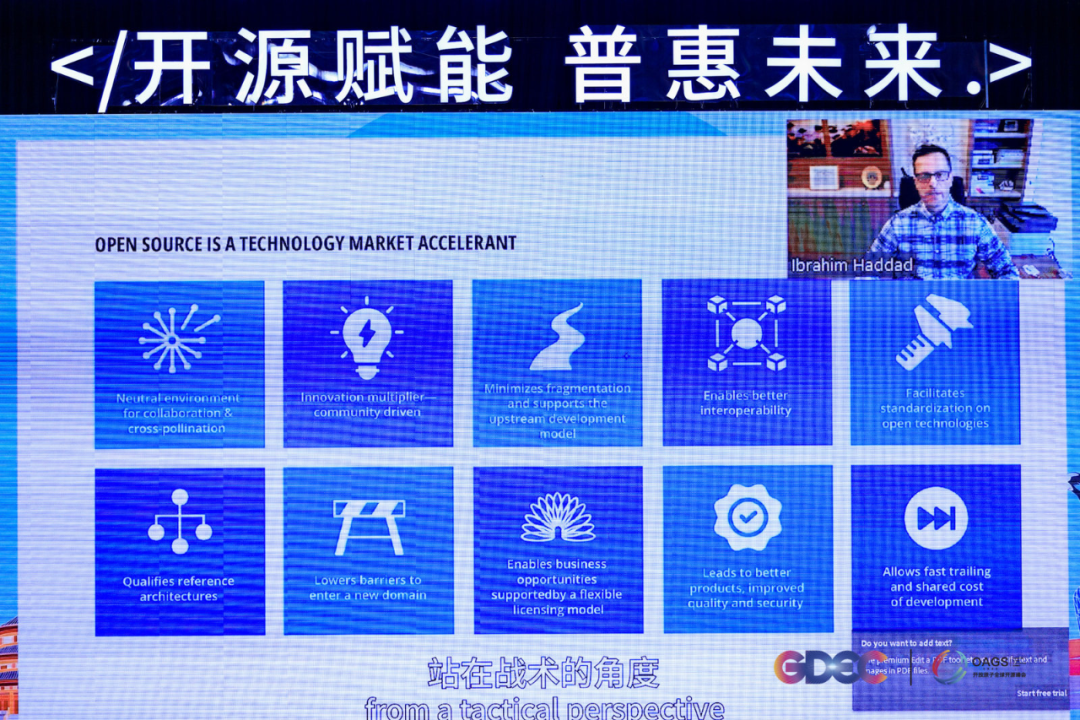 LF AI&Data 基金会执行董事 Ibrahim Haddad 发表题为《Open Source is A Technology Market Accelerant》的线上演讲,他表示,开源能够获得来自多个组织的资源,将碎片化程度降到最低,并直接支持上游的开发模式。开源技术和项目可以降低技术的应用壁垒,获得更多的商业机会、更好的产品和服务、更快的开发速度和更低的成本。