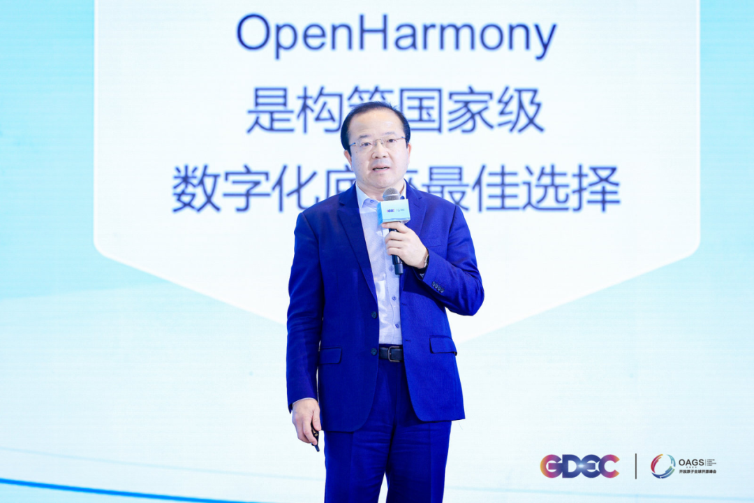 深圳开鸿数字产业发展有限公司 CEO 王成录发表题为《共筑 OpenHarmony 高地 践行数字中国》的主题演讲,他表示数据是数字中国演进发展的关键,统一开放的安全数字底座是实现数据资源高效使用、开放共享的技术核心。基于 OpenHarmony、开放领先的开鸿安全数字底座可以充分满足千行百业的建设要求,践行数字中国建设。