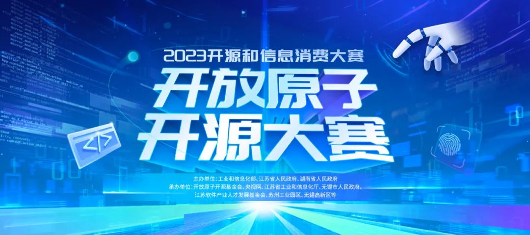 2023开源和信息消费大赛由工业和信息化部、江苏省人民政府、湖南省人民政府共同主办,开源赛道拟由开放原子开源基金会、央视网、江苏省工业和信息化厅、无锡市人民政府、江苏软件产业人才发展基金会、苏州工业园区、无锡高新区等联合承办,总投入超过5000万元。
