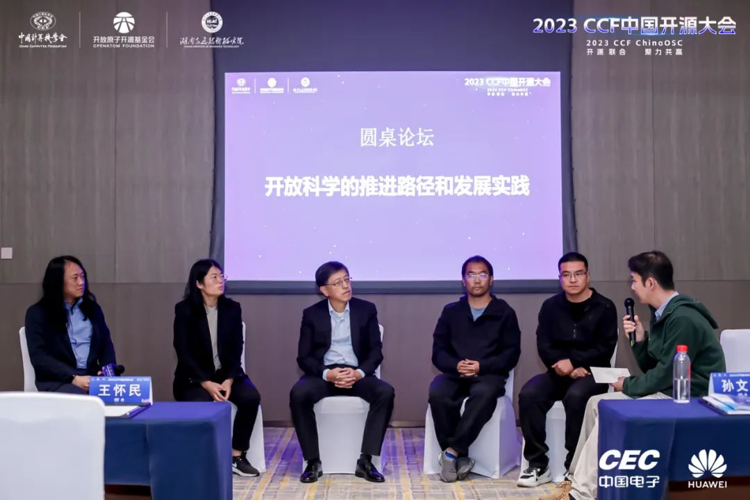 在最后的圆桌讨论环节,嘉宾们分别从开放科学的供给、新兴技术增强和平台效应挑战等多个方面探讨了开放科学的发展路线和实践落地。