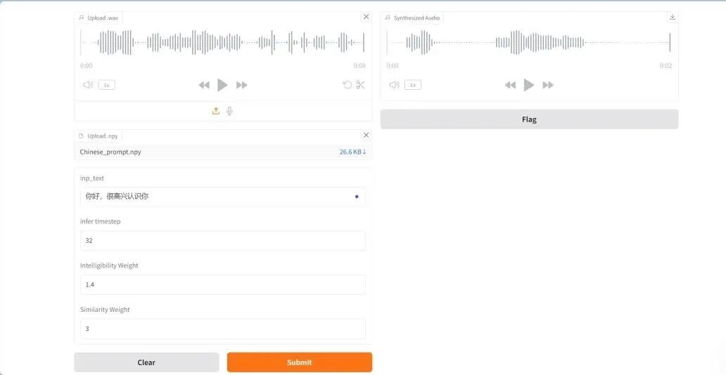 该教程现已上线 OpenBayes 公共教程界面,支持上传自己的音频样本,模型将根据样本生成相似的语音,实现零样本声纹克隆。