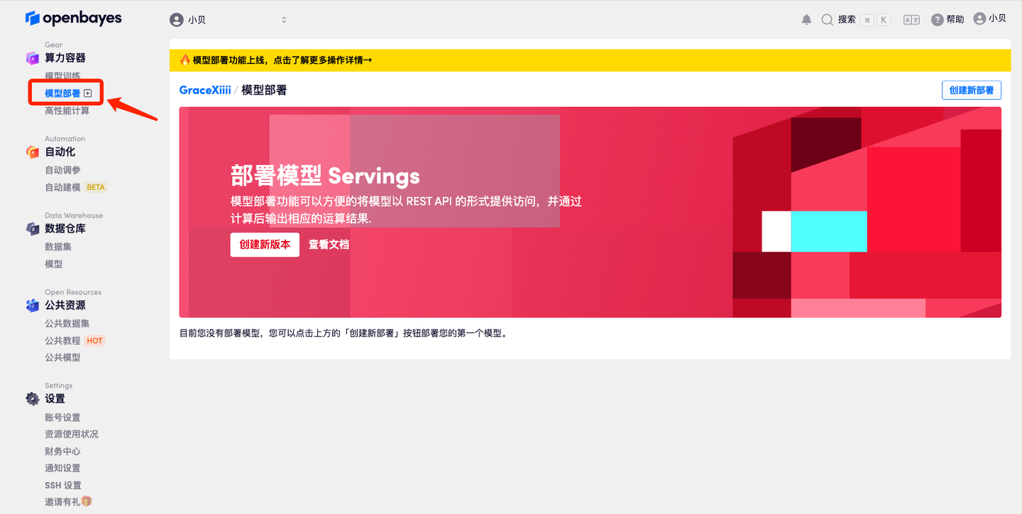 OpenBayes平台模型部署功能现已正式上线,使用自定义部署方式,通过编写 start.sh 启动脚本,即可自定义服务的启动方式。