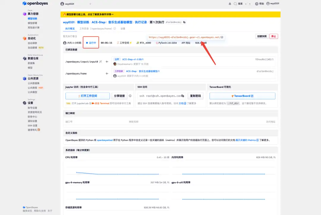 目前,「ACE-Step:音乐生成基础模型」已上线至 OpenBayes 公共教程板块,点击下方链接即可体验一键部署教程 ⬇️