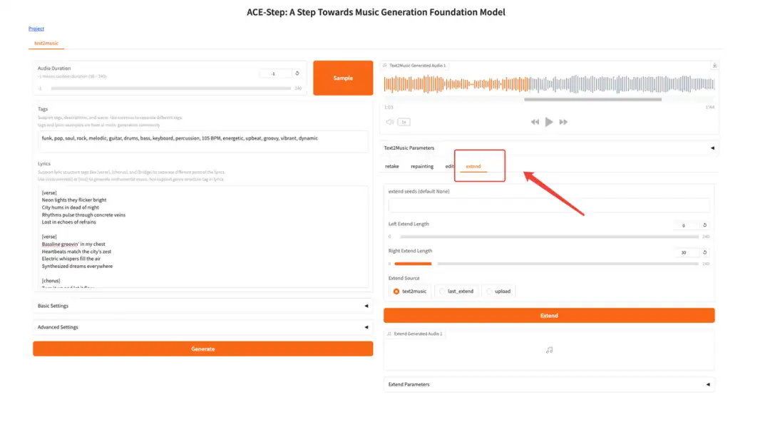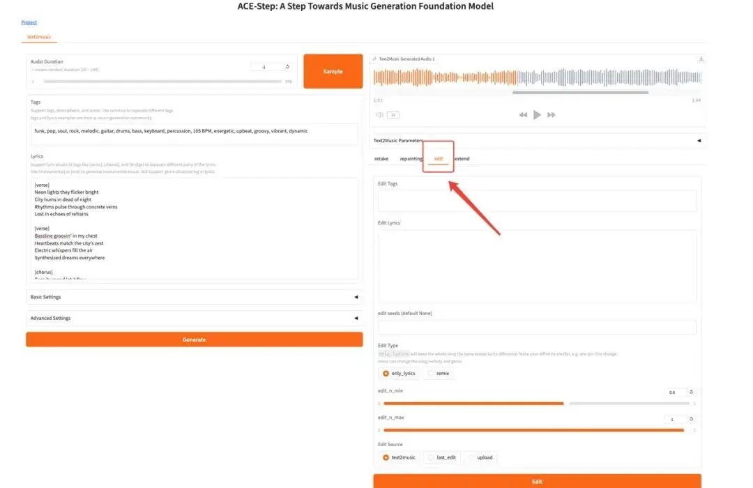 * Edit Type:编辑类型,可选择「only_lyrics」模式(保留原旋律)或「remix」模式(改变旋律)