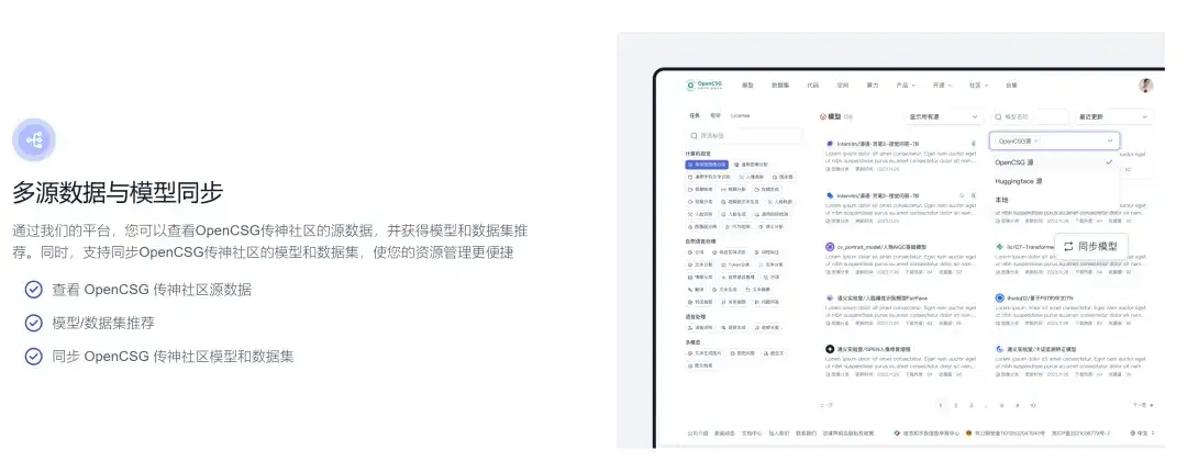 在大模型的应用与发展过程中,模型的可持续性至关重要。随着开源大模型的快速迭代,企业用户不仅需要稳定可靠的模型管理能力,还需要一个能长期支持模型演进的生态体系。CSGHub 通过深度整合开源社区资源,提供企业级的模型存储、更新与优化能力,确保企业能够持续利用最新的技术成果,并保持竞争力。