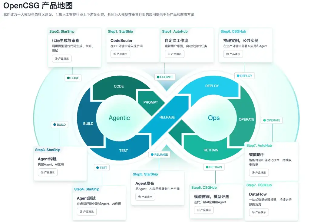 - Agentic的HuggingFace(Agentic HuggingFace):OpenCSG不仅整合了HuggingFace的技术,还在Agent(智能体)全生命周期(Agentic)方面提供强大的支持,确保企业在实际应用中的稳定性与可操作性。