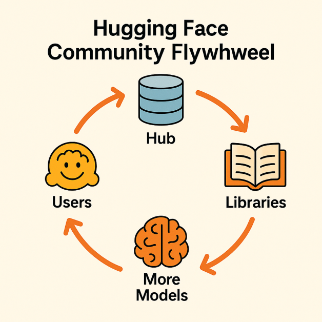 社区增长飞轮: 这是其生态持续扩张的引擎。Hub 上更多的资产使库的功能更强大,更强大的库吸引更多用户,而更多用户又向 Hub 贡献新资产。这个自循环是 Hugging Face 最强大的护城河。