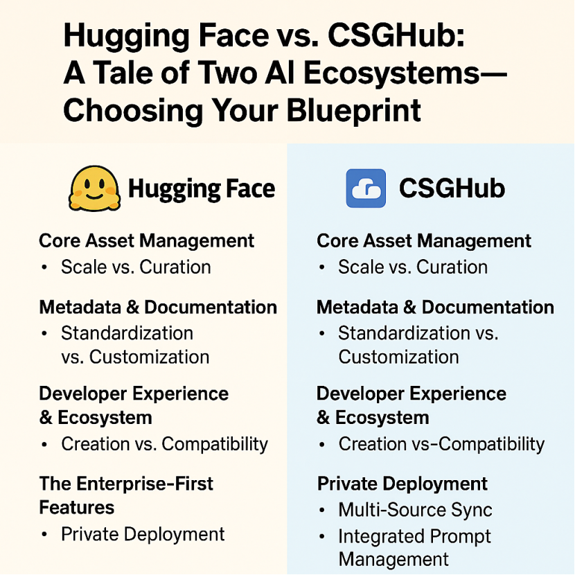 在 Hugging Face 和 CSGHub 之间做选择,并非一个关于具体功能的战术决策,而是一个关于哪种架构蓝图与您组织使命相符的战略决策。