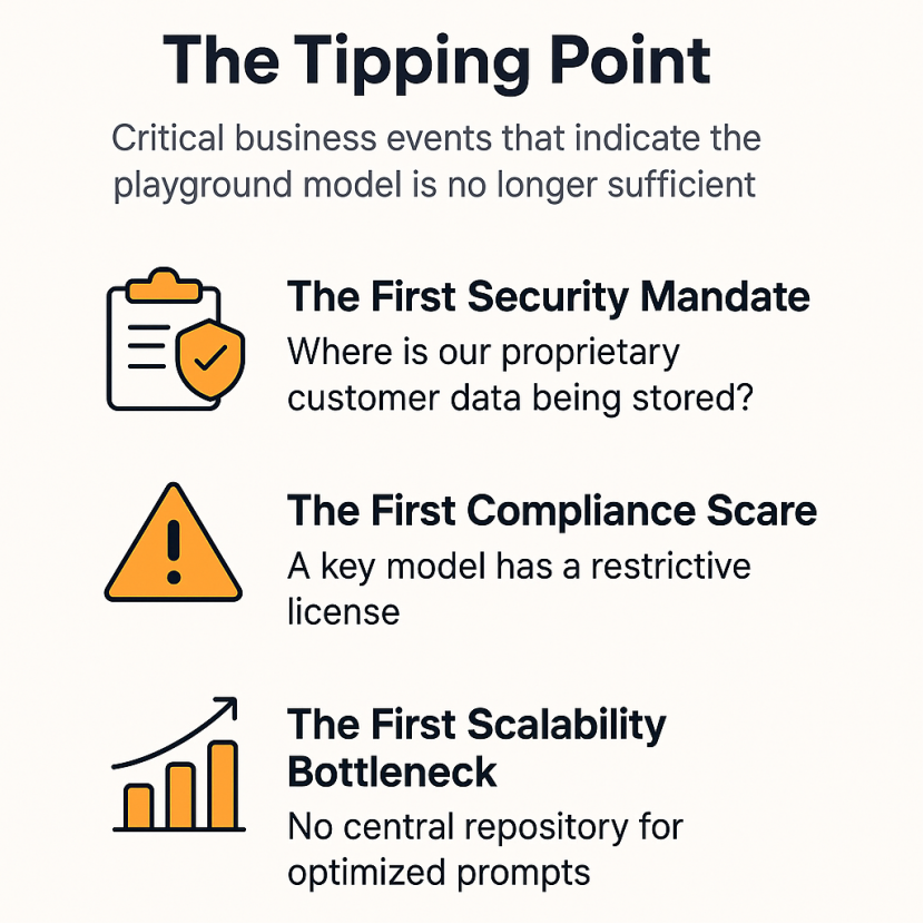 当以下几个关键业务事件发生时,通常标志着一个组织正在超越“试验场”模式,必须进行演进: