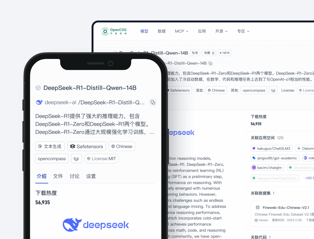 CSGHub 已适配主流国产开源模型,包括 DeepSeek、Qwen、百川、智谱、InternLM 等,兼容性强,可灵活融入高校现有模型生态。
