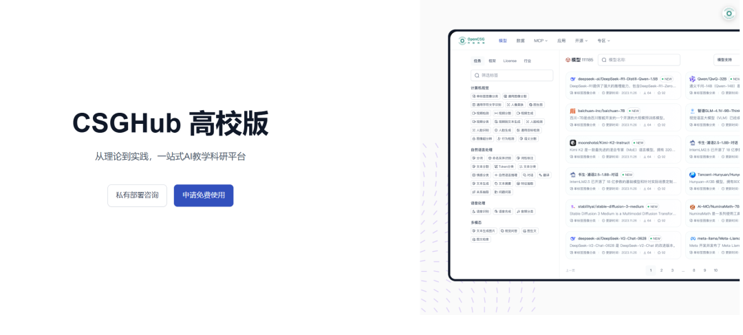 OpenCSG 正式发布 CSGhub高校版,专为高等院校的教学、科研及创新实践量身定制。
