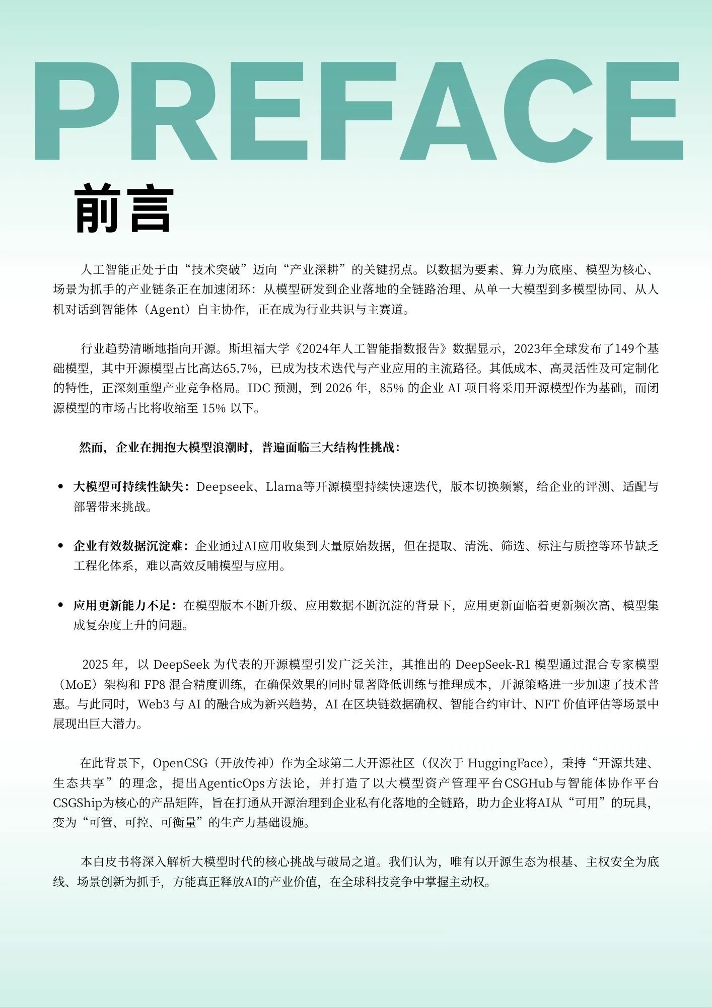 在AI技术飞速发展的今天,企业正面临着从技术突破到行业应用的转型挑战。为此,OpenCSG发布了最新的白皮书,深入剖析了AI产业化的核心挑战与解决方案,并介绍了其革命性的AgenticOps方法论,助力企业实现AI的高效落地与持续进化。