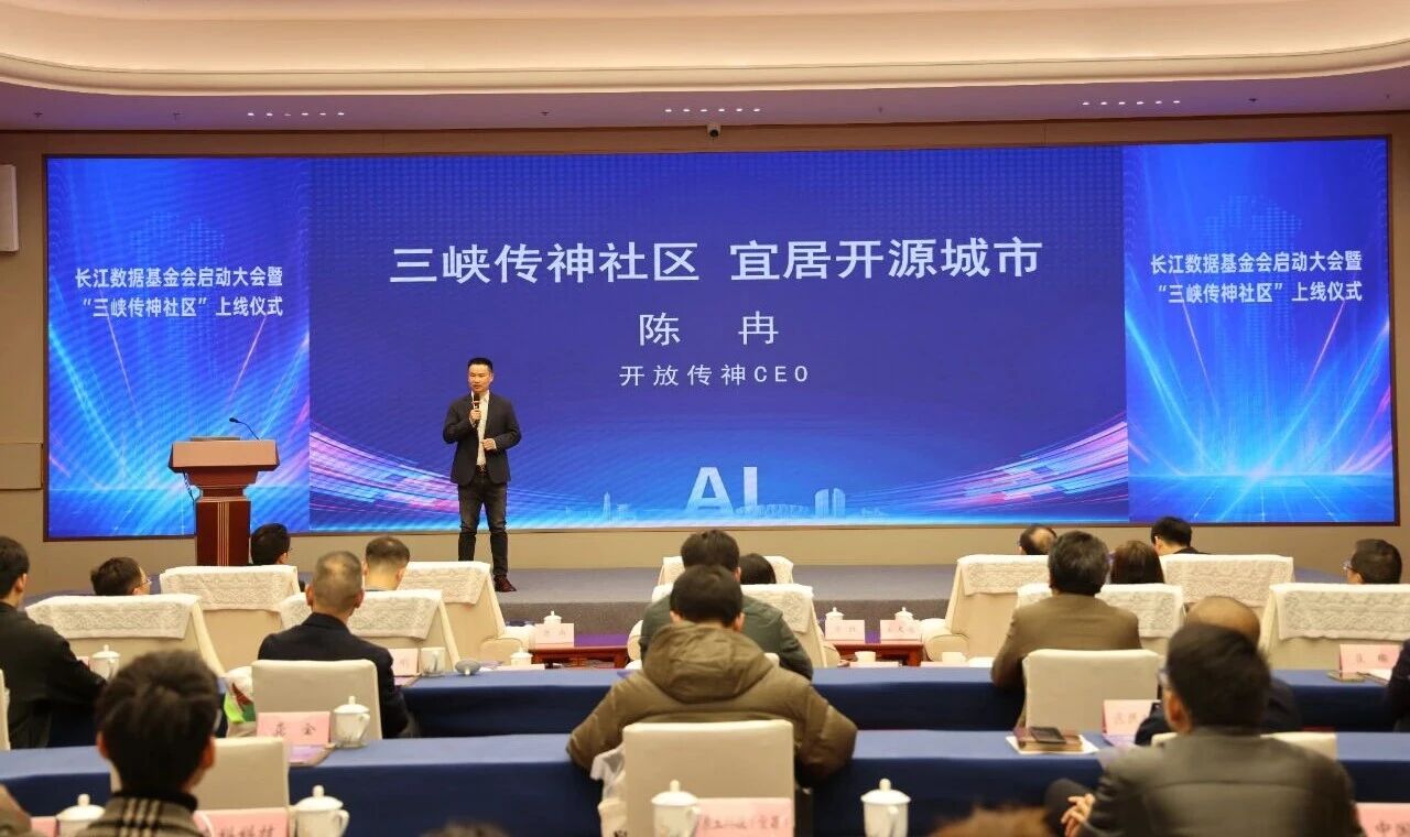 在与会嘉宾的共同见证下,长江数据基金会理事、OpenCSG(开放传神)CEO陈冉先生郑重宣布“三峡传神社区”正式上线。这一平台的成功启动,标志着项目进入了全新的发展阶段,并将整场仪式的热烈气氛推向高潮。该社区作为开放共享的算力与数据要素协作平台,将与基金会、开源产业联盟形成“三位一体”协同机制,赋能区域数字经济高质量发展。