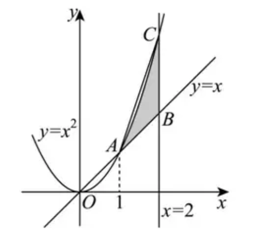 若集合 \left\{(x, y) | y = x + t(x^2 - x), 0 \leq t \leq 1, 1 \leq x \leq 2 \right\} 表示的图形中,两点之间最大距离为 d,面积为 S,则( )