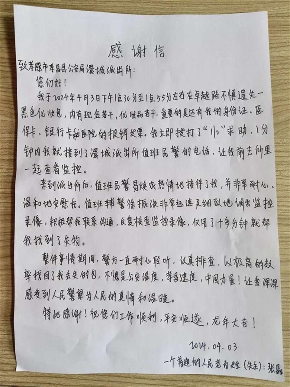 根据图上的信息,哪位民警接待了这位老百姓?