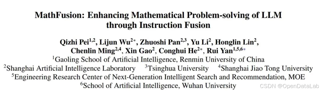 本研究成果《MathFusion: Enhancing Mathematical Problem-solving of LLM through Instruction Fusion》由OpenDataLab和人大高瓴等高校学院、研究结构联合提出,已被计算语言学和自然语言处理领域的顶级会议ACL 2025接收,欢迎关注。