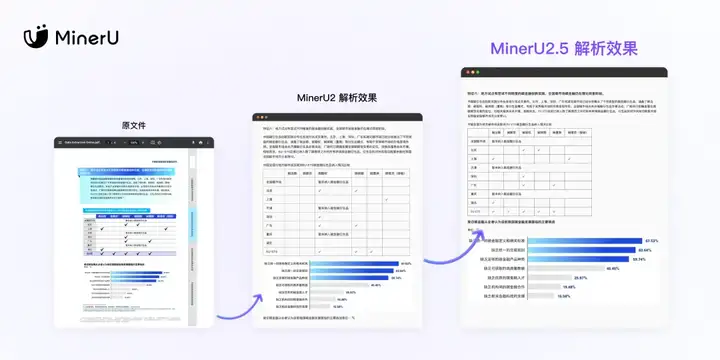 当前,市面上的文档解析工具,要么速度较快但难以处理复杂文档,要么功能强大却频繁出现“幻觉”。MinerU 2.5独辟蹊径,采用首创的“二阶段”解析架构,同时支持原生分辨率处理,从根源上最大限度地降低了信息失真的概率,实现了对复杂文档又快又准的解析效果,在显著减少“幻觉”现象的同时,大幅提升了解析结果的可靠性。
