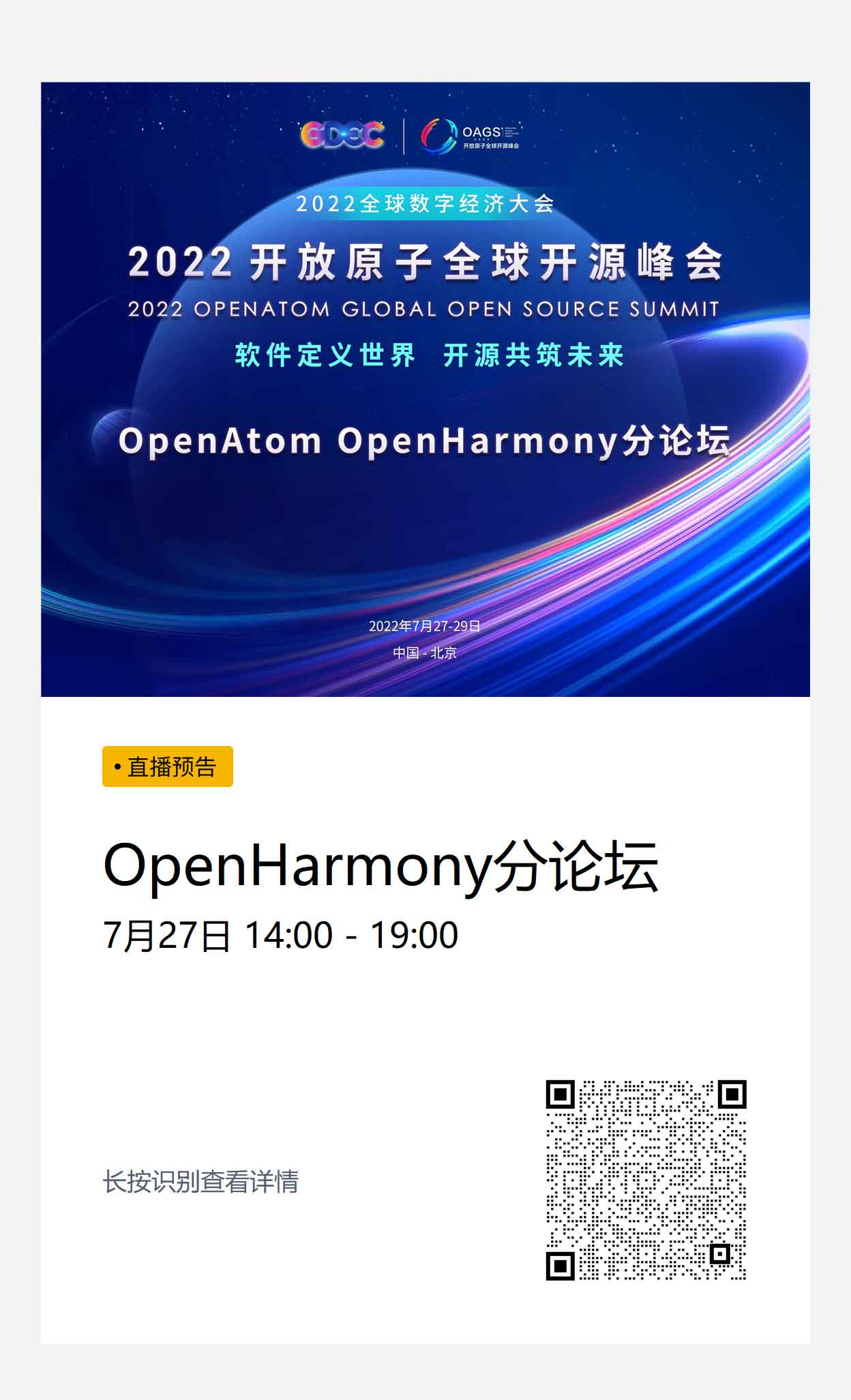 7月27日14:00,不容错过的科技盛宴!2022开放原子全球开源峰会上,OpenHarmony分论坛将深入探讨万物互联如何赋能各行各业。整装待发,一起见证开源技术的崭新未来。
