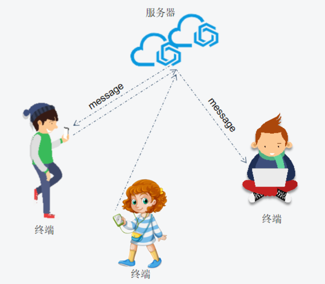 实现即时通讯的设备需求:安装应用的终端设备、网络环境和云端服务器。