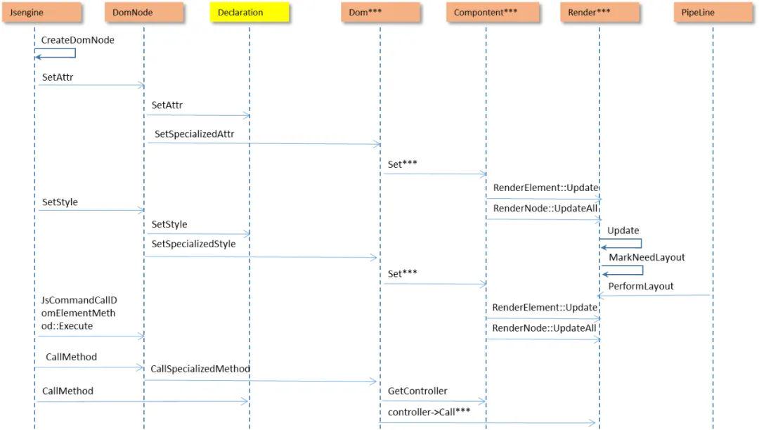 1. 组件的属性和样式是保存在前端页面的,通过JsframeWork解析页面,并调用JsEngine的CreateDomNode接口创建Dom节点的同时传递新节点属性和样式。如果页面中属性样式发生变化,则单独调用SetAttr或SetStyle来更新属性和样式。