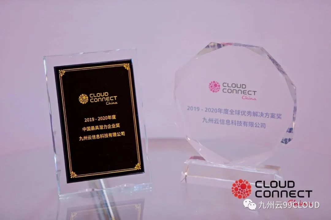 会议期间,第七届“云鼎奖(Top Cloud Connect Awards)”最终获奖名单正式揭晓。九州云凭借自身技术实力和企业影响力斩获“2019-2020年度中国最具潜力企业奖”和“2019-2020年度全球优秀解决方案奖”两项殊荣。