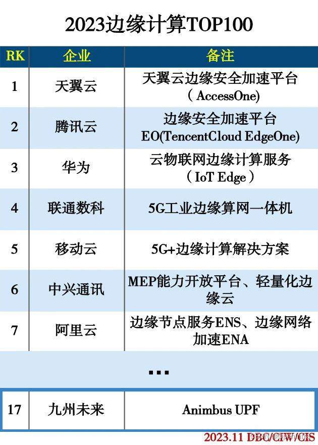 近日,德本咨询、互联网周刊、中国社会科学院信息化研究中心联合发布 “2023边缘计算TOP100”榜单,九州未来凭借领先的技术优势、产品服务能力、落地实践经验等综合实力入选。