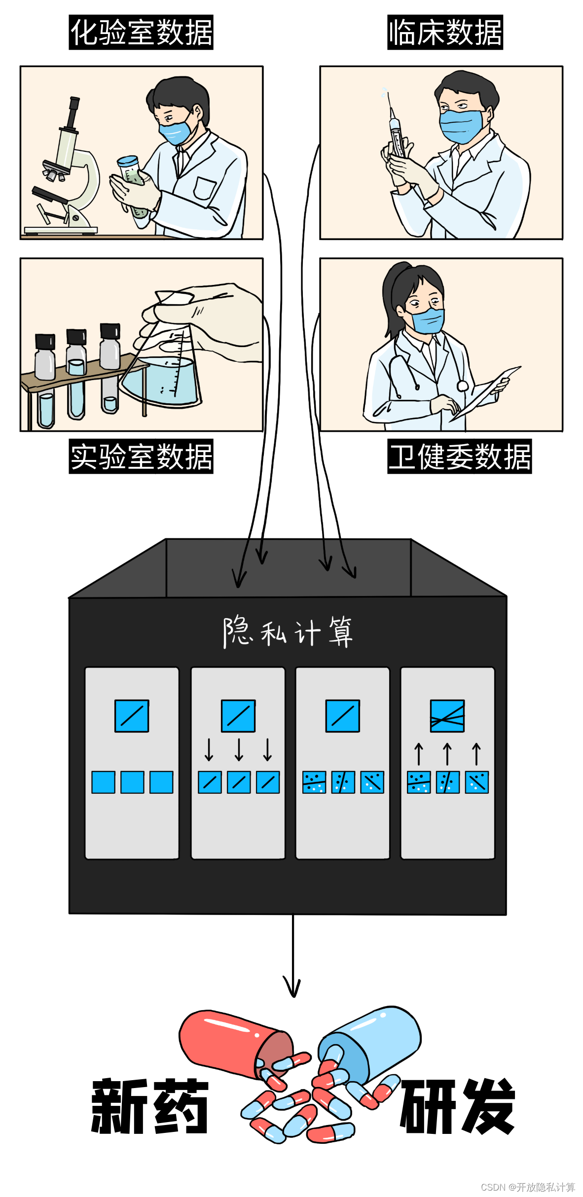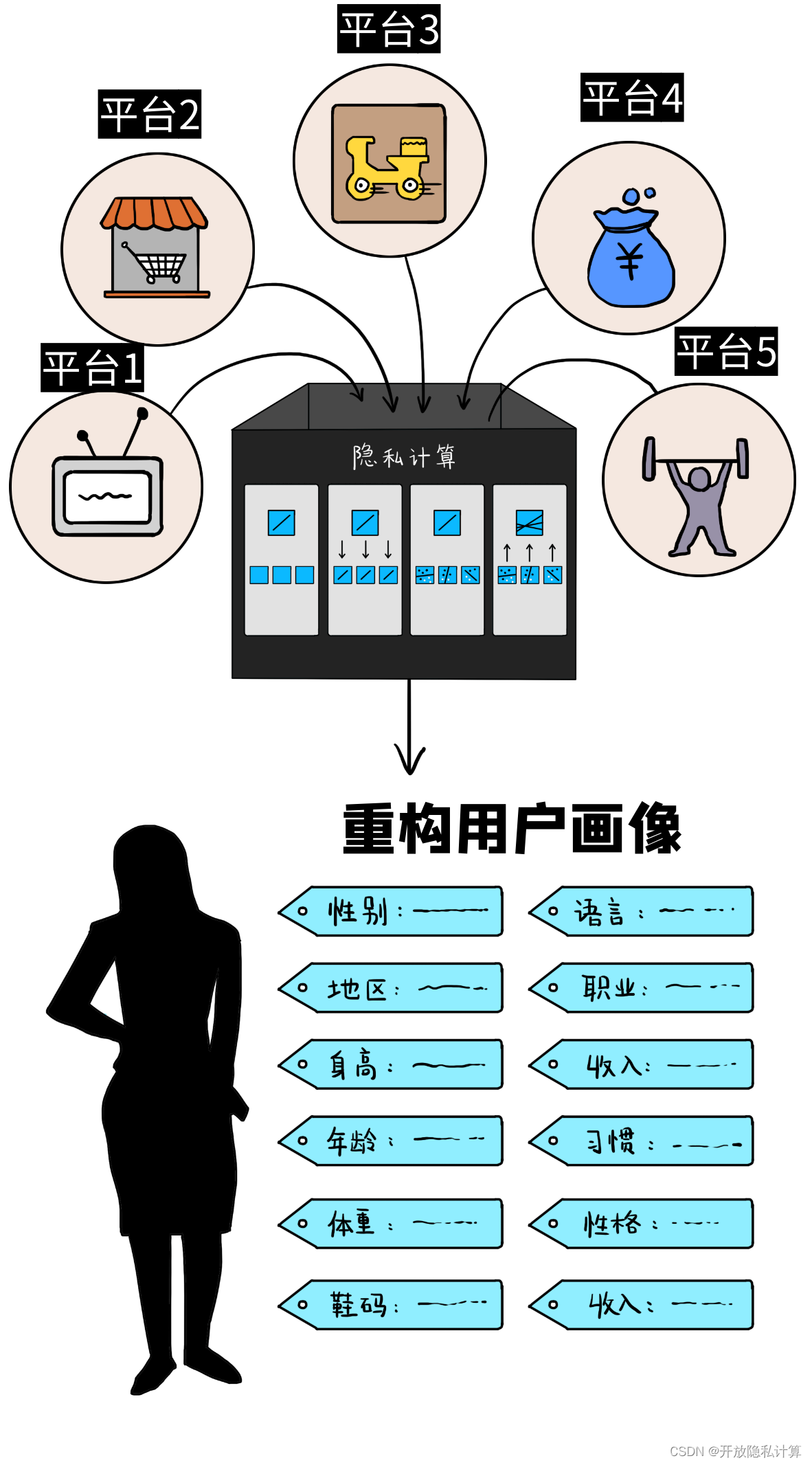 ③联邦学习:不收集原始数据而是通过模型来完成计算,但是模型难以完全保密;但开发难度相对轻松。
