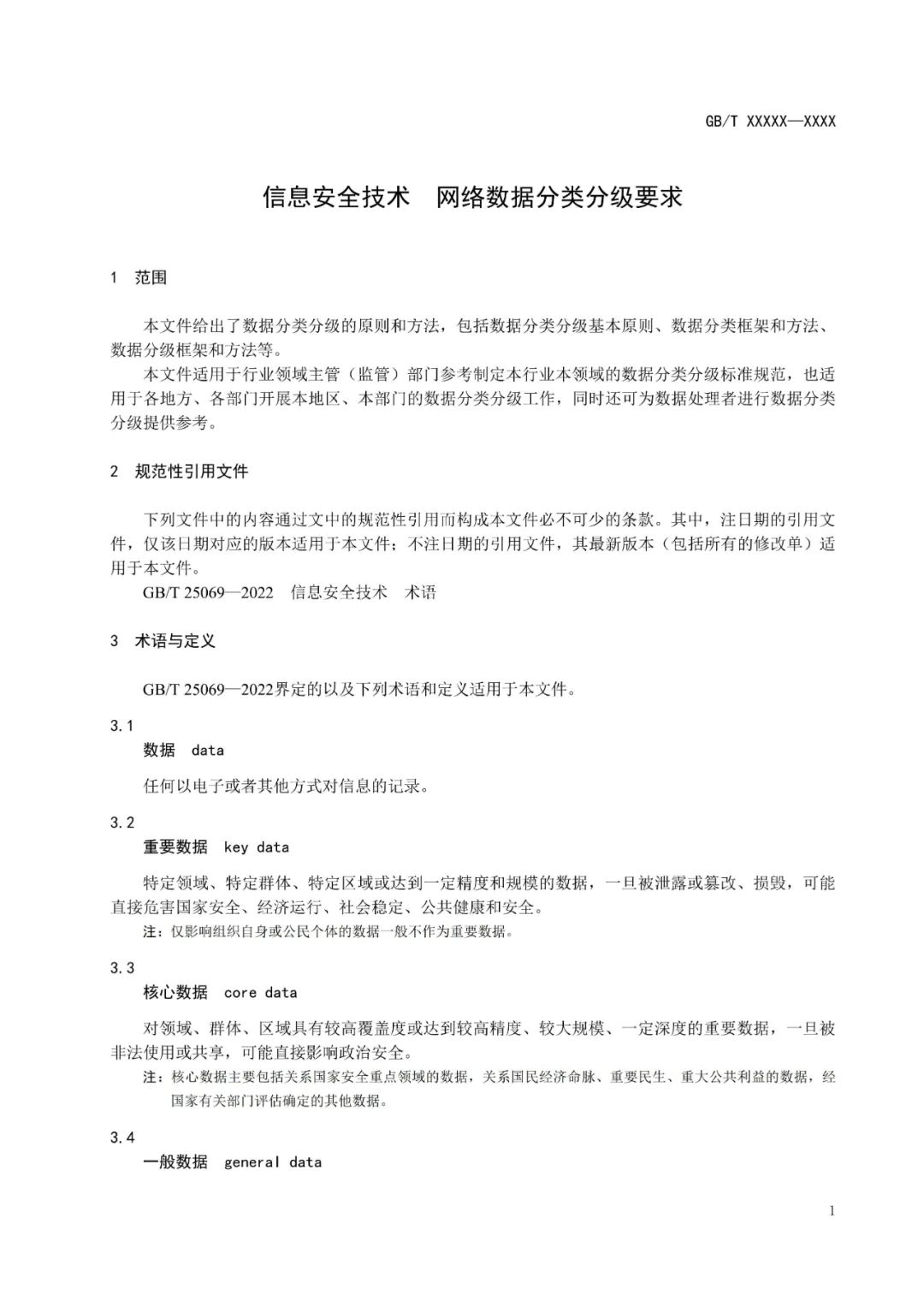 全国信息安全标准化技术委员会发布了《信息安全技术网络数据分类分级要求》征求意见稿,将数据分为核心、重要、一般三个级别。核心数据涉及政治安全、国家安全等领域,重要数据涵盖国家安全、经济运行等方面,一般数据影响范围相对较小。标准还详细阐述了数据分级的要素,包括领域、群体、区域、精度等,并强调了安全风险评估。