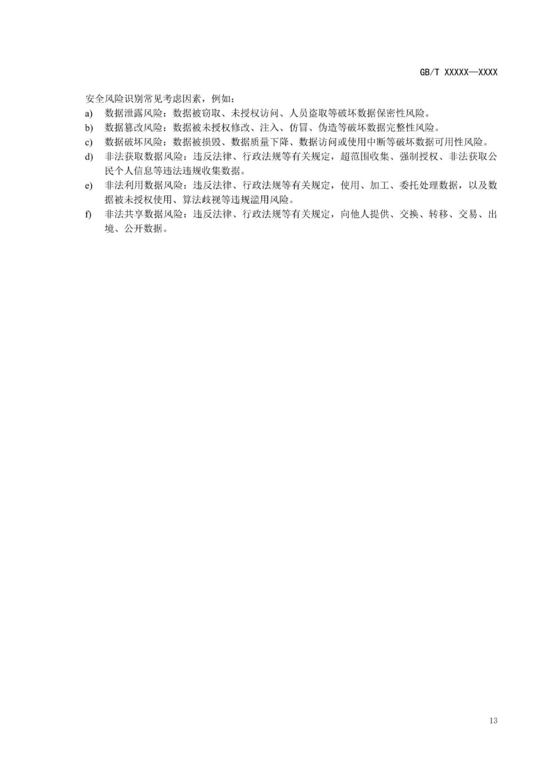 i) 安全风险:主要识别数据可能遭到泄露、篡改、破坏、非法获取、非法利用、非法共享的风险。