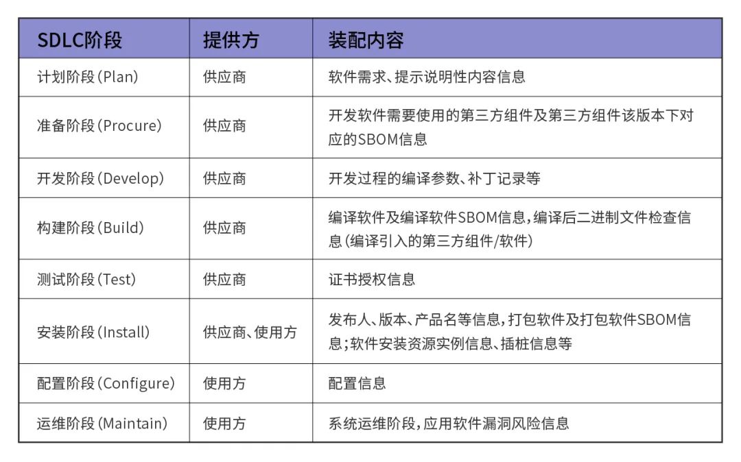当SBOM被重新定义后,SBOM具有更高的透明度、具体来源和传播效率,企业机构在一定条件下通过SBOM即可识别和修复漏洞风险。且SBOM还可以指导开发人员或供应商在整个SDLC中进行应用安全软件开发实践。以下说明了SBOM如何在SDLC中完成组装的过程,供实践人员进行参考: