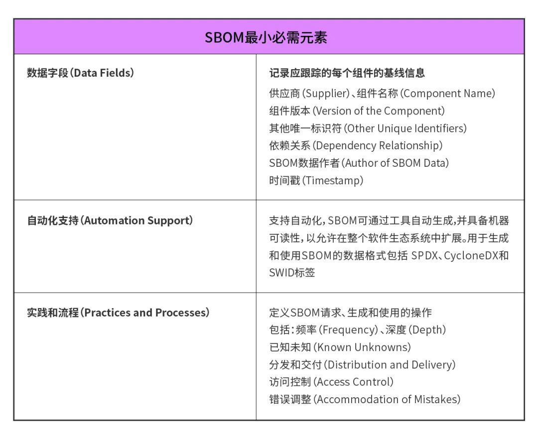 图4 NTIA《The Minimum Elements For a Software Bill of Materials (SBOM)》