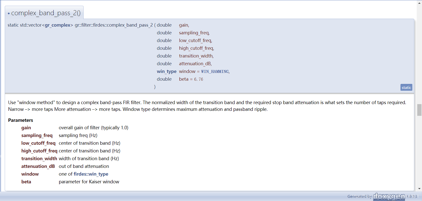 GNU Radio Manual and C++ API Reference: gr::filter::firdes Class Referen