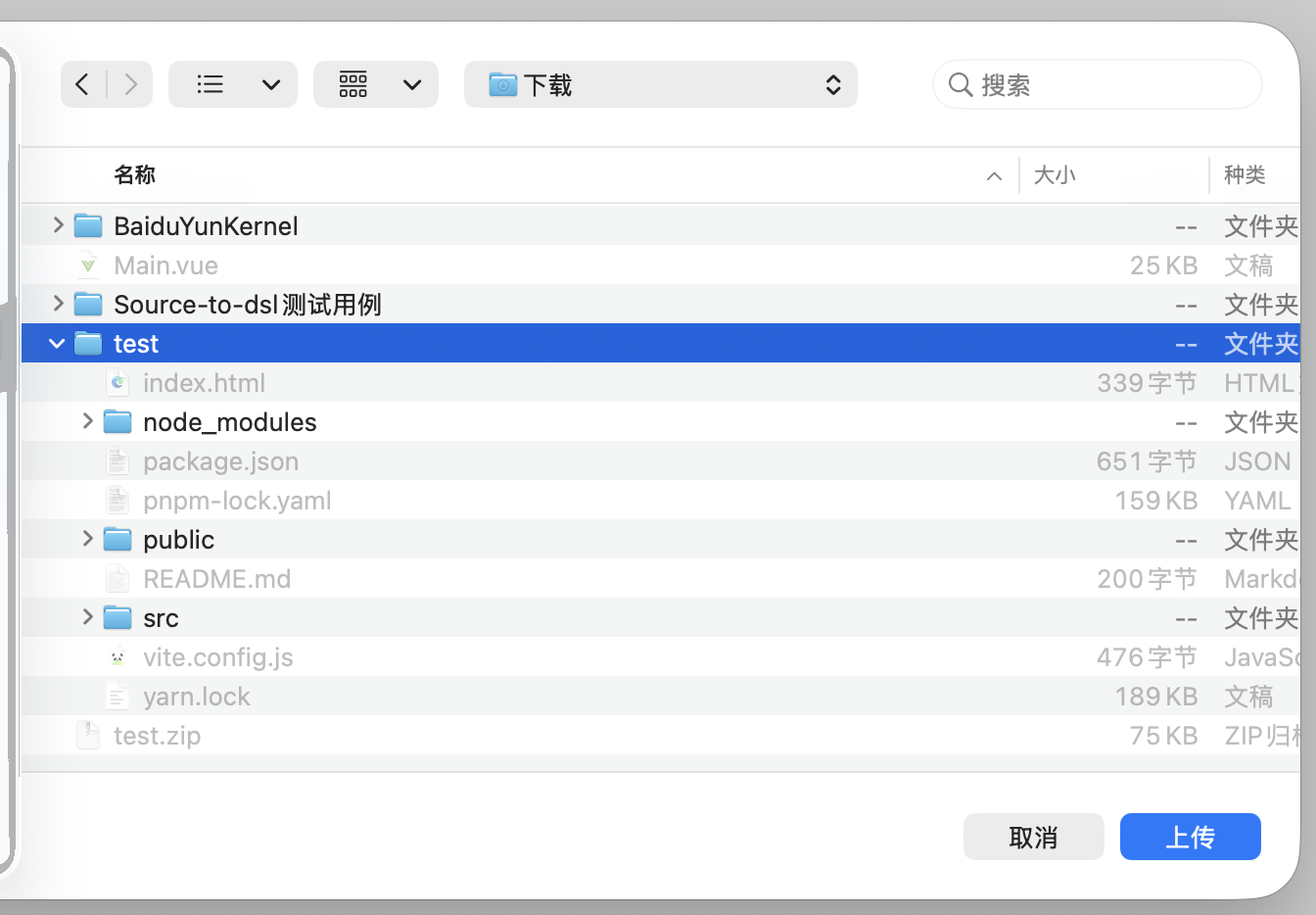 - 选择“项目压缩包”,上传打包好的 Vue 项目 zip。