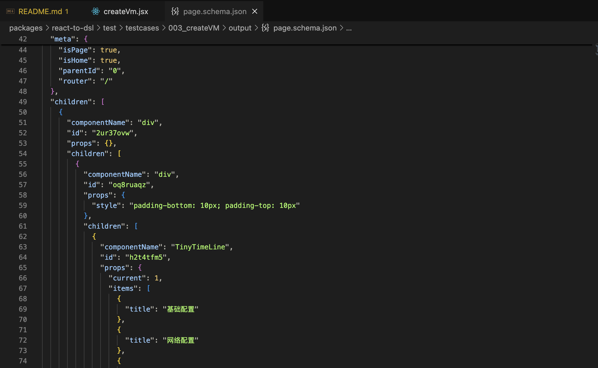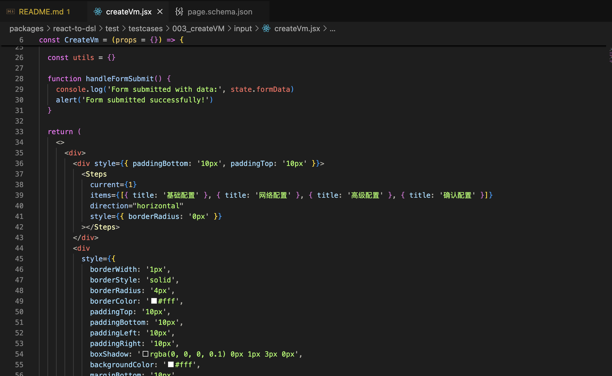 当前 React-To-DSL 以测试用例形态展示能力,可在包内直接运行:
