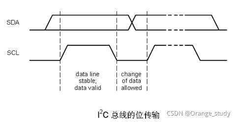 I2C总线总线的SDA和SCL两条信号线同时处于高电平时,规定为总线的空闲状态。此时各个器件的输出级场效应管均处在截止状态,即释放总线,由两条信号线各自的上拉电阻把电平拉高。