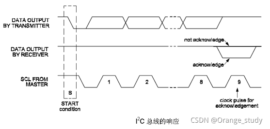 I2C总线上的所有数据都是以8位字节传送的,发送器每发送一个字节,就在时钟脉冲9期间释放数据线,由接收器反馈一个应答信号。 应答信号为低电平时,规定为有效应答位(ACK简称应答位),表示接收器已经成功地接收了该字节;应答信号为高电平时,规定为非应答位(NACK),一般表示接收器接收该字节没有成功。 对于反馈有效应答位ACK的要求是,接收器在第9个时钟脉冲之前的低电平期间将SDA线拉低,并且确保在该时钟的高电平期间为稳定的低电平。 如果接收器是主控器,则在它收到最后一个字节后,发送一个NACK信号,以通知被控发送器结束数据发送,并释放SDA线,以便主控接收器发送一个停止信号P。