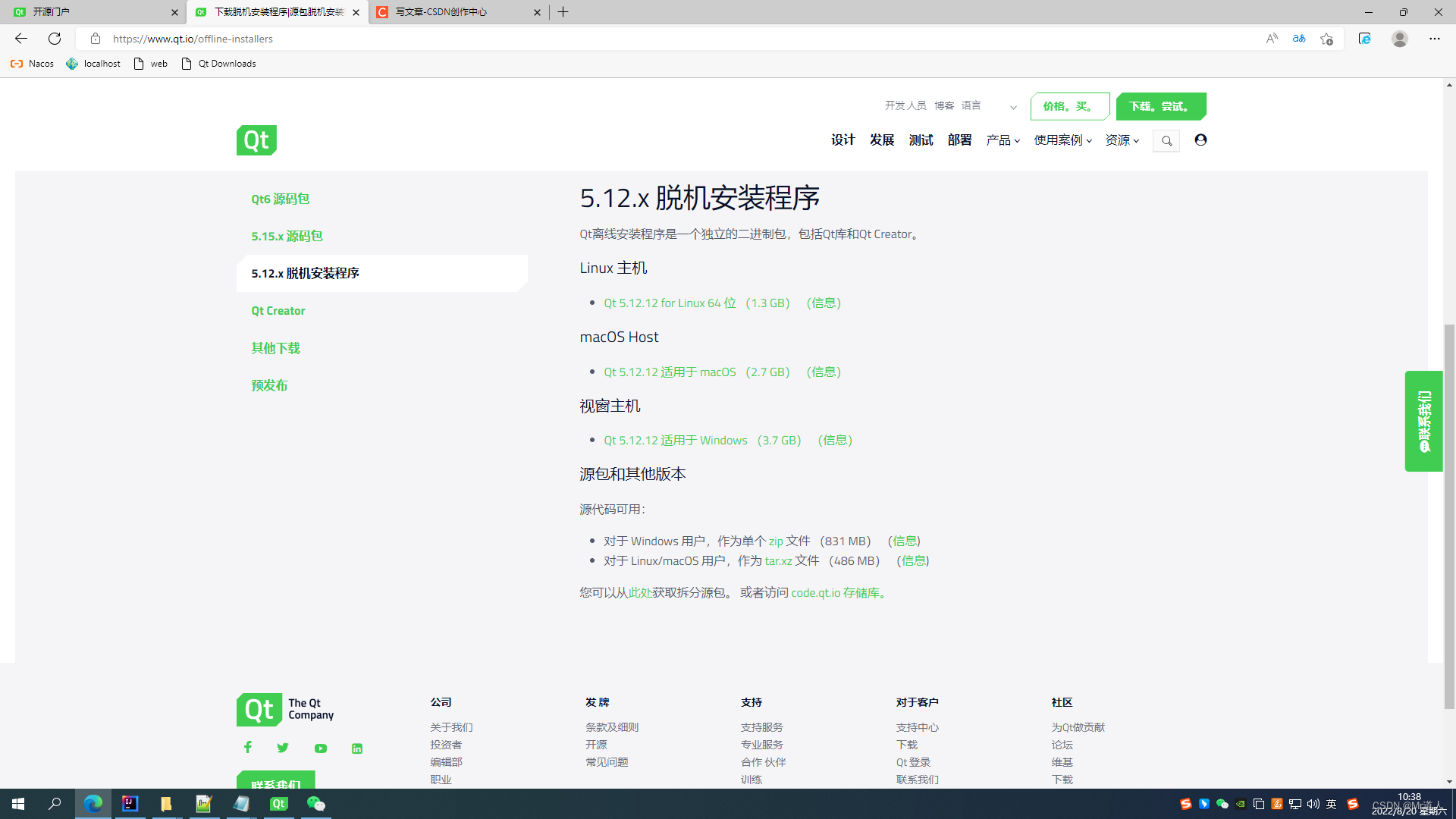 下载安装包,可以到Qt官网,但是下载速度非常慢。一般推荐到几个国内著名的 Qt 镜像网站下载: