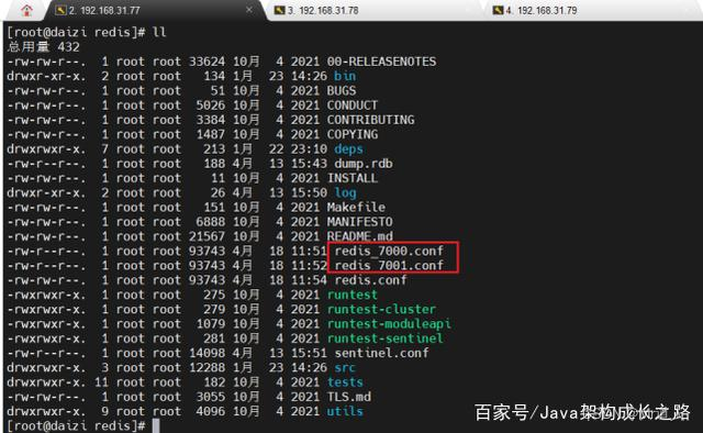 以192.168.31.77这台虚拟机操作演示,拷贝出两份单独的redis配置文件,其中一个作为master节点的配置,一个作为slave节点的配置。