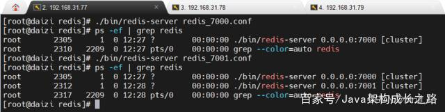 另外两台虚拟机执行同样的步骤启动好各自的两台redis实例。此时,我们就有了6台运行中的redis实例: