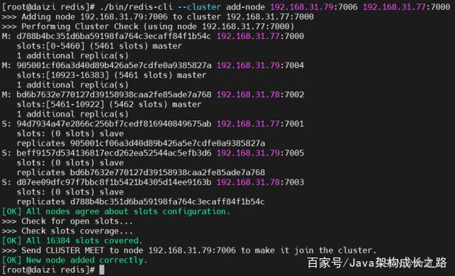 ./bin/redis-cli --cluster add-node 192.168.31.79:7006 192.168.31.77:7000