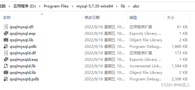 INCLUDEPATH+="D:\Program Files\mysql-5.7.35-winx64\include"