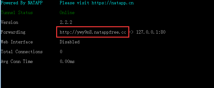10.将natapp分配的网址(上图Forwarding ),鼠标选定然后复制下来(选定之后单击鼠标右键),在浏览器中访问,可以看到内网穿透成功了!